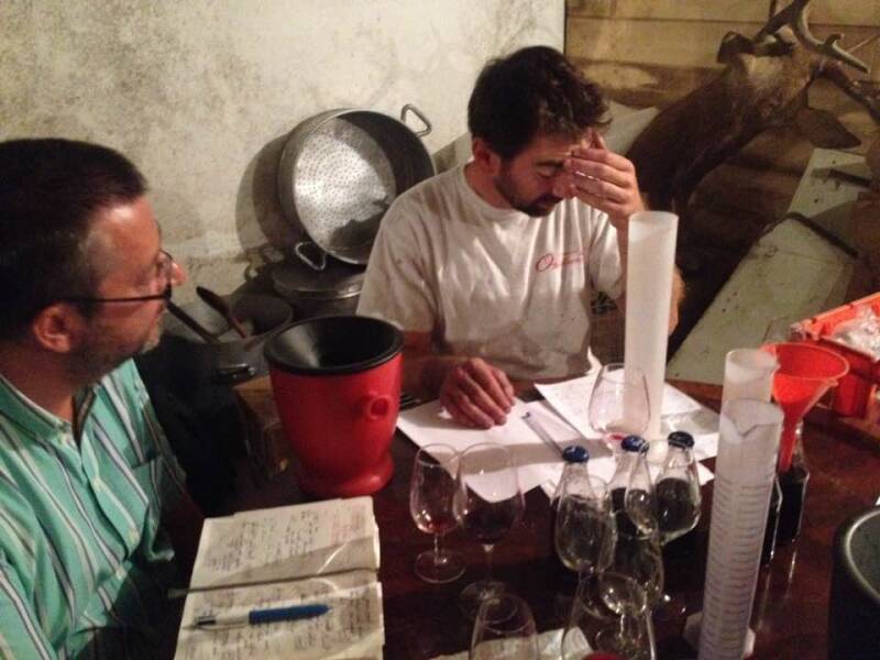 Als een godsgeschenk is de mistral komen opzetten op 17/9 en werd het laatste perceel grenache van Clos des Frères geoogst. Het perceel achter ons huis heeft echt genoten van de korte regenbui en was plukrijp. Nog nooit was deze wijngaard in zo’n mooie toestand en zal hij de Clos des Frères opfleuren met mooie zuren. Na een korte poging om mee te plukken met de Spanjaarden, moest ik na een dik half uur verstek laten. Mijn voet kon dit niet meer aan en zwol aan met pijnlijke steken in de achillespees. Uiteindelijk was mijn energie meer bruikbaar in de kelder, waar alles op volle toeren liep en de ondergrond ten minste effen was. Nog nooit werd op zo’n korte periode alles binnengehaald. Nog nooit was het zo heftig in de kelder om de toeloop van de binnengekomen druiven te metriseren. Los van de voet, deed alles aan mijn lichaam pijn. Het werk van déléstages en soustirages, om nog niet te spreken van de décuvages sloopt het lichaam van een oude zak van 55 jaar. Maar dit werk is zo belangrijk, omdat ook hier een goed millésime wordt gemaakt of gekraakt. Samen met Estelle vorm ik het basisteam in de cave en waak ik over de evolutie van de wijnen. Na meer dan 10 dagen labeur, mag gesteld worden dat de binnengehaalde kwaliteit van druiven (die onderwijl in fermentatie zijn gegaan) van uitzonderlijke kwaliteit zijn. De eerste testen –zowel proefondervindelijk, als labotechnisch- waren fantastisch. Jérémy maakt zich wel druk over de hoge alcoholpercentages, terwijl ik euforisch ronddartel vanwege de bemoedigende PH-waarden. De alcoholpercentages kunnen mij een worst wezen.